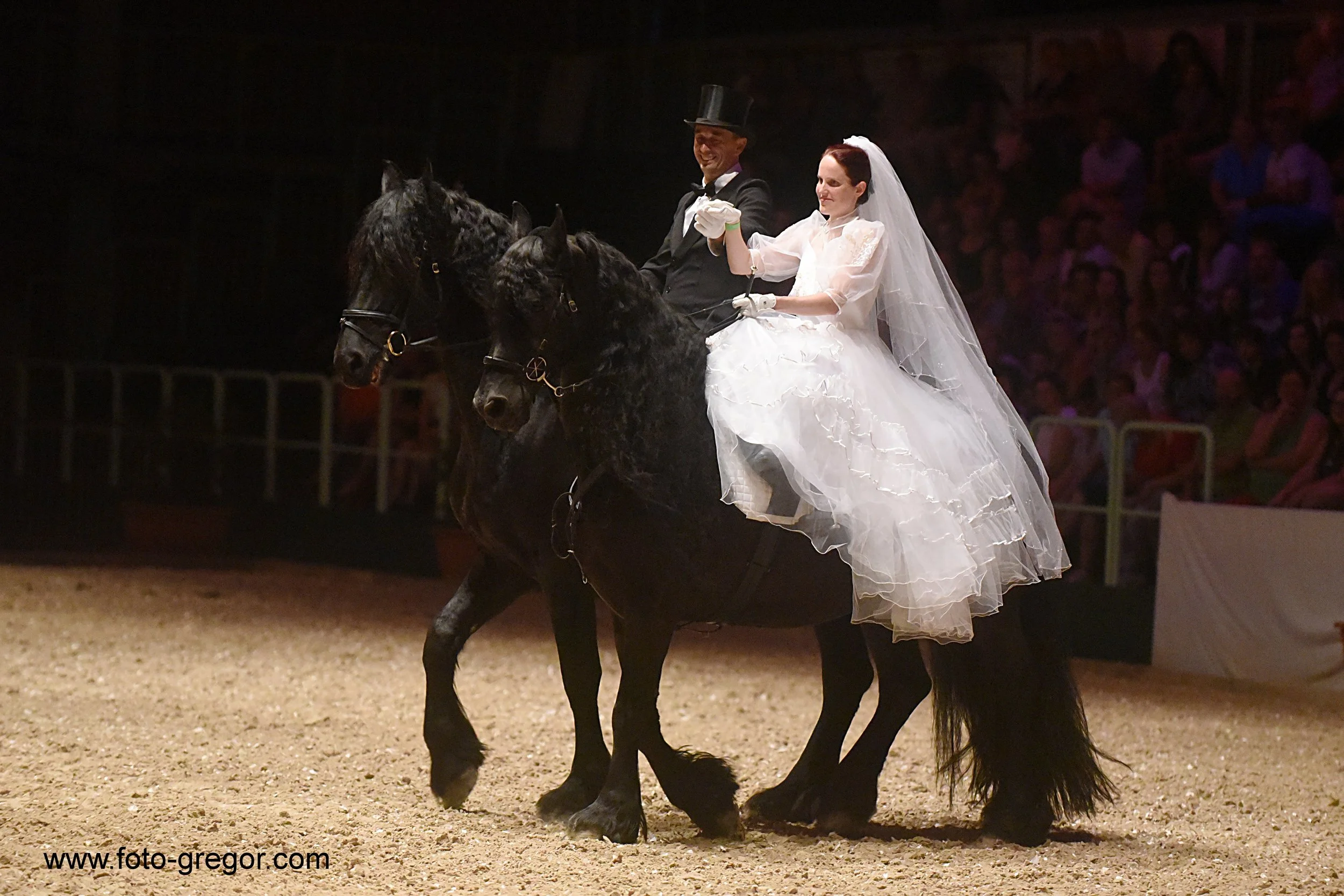 Der schönste Tag im Leben, präsentiert zu Pferde. Dieses kleine aber feine Bild weckt die Sehnsucht auf den großen Tag. Unser Brautpaar tanzt für sie ins Glück.